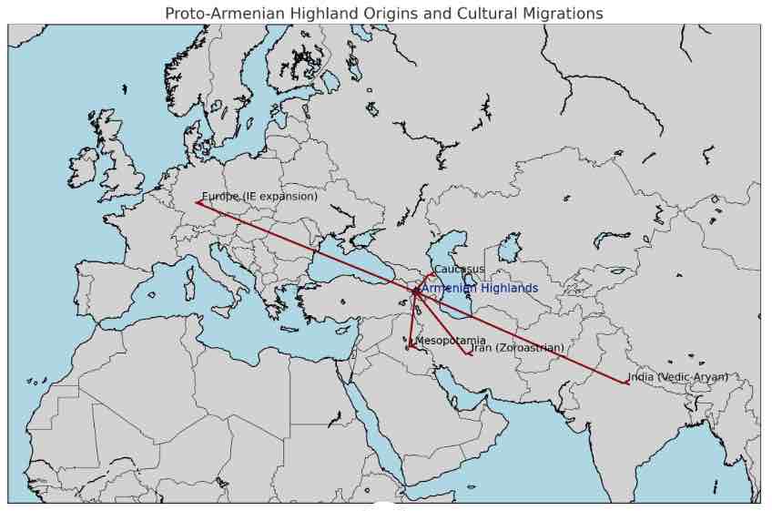 Would you like a visual map of migration paths from Armenian Highlands, or a timeline showing how proto-Armenians could have seeded Indo-European cultures?
